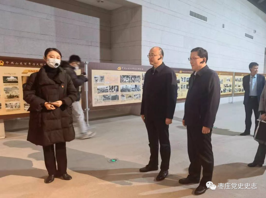 启动仪式后,全体人员共同参观了中共山东百年历史图片展。图片展分为“前言”“筚路蓝缕、苦难辉煌”“艰辛探索、砥砺前行”“勇立潮头、改革开放”“走在前、开新局”及“结语”6个部分,通过精选的近300幅图片,以时间为脉络,全面展示在党中央坚强领导下,山东党组织团结带领全省人民走过的百年光辉历程及取得的伟大成就。图片展系首次在枣庄举办,将于近期在枣庄铁道游击队纪念馆和市政大厦等地持续展出。
