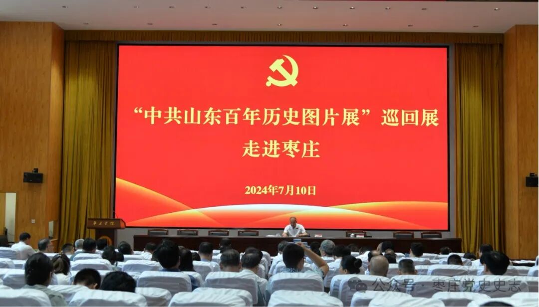 为贯彻落实《党史学习教育工作条例》,把党史学习教育融入高校思政课教学,7月10日,“中共山东百年历史图片展”巡回展走进枣庄暨“党史教育进校园 红色薪火永相传”活动在枣庄学院举行。山东省委党史研究院副院长、一级巡视员姚丙华,枣庄市委副书记、政法委书记张国洲,枣庄市委党史研究院院长李福运出席活动,省委党史 研究院科研管理处处长邱从强,业务指导处处长、一级调研员张耀龙,宣传教育处副处长孟召际参加活动。枣庄学院党委书记高峰致辞,枣庄学院党委委员、副院长李目海主持仪式,省市区有关部门负责同志、枣庄学院师生代表150余人参加活动。