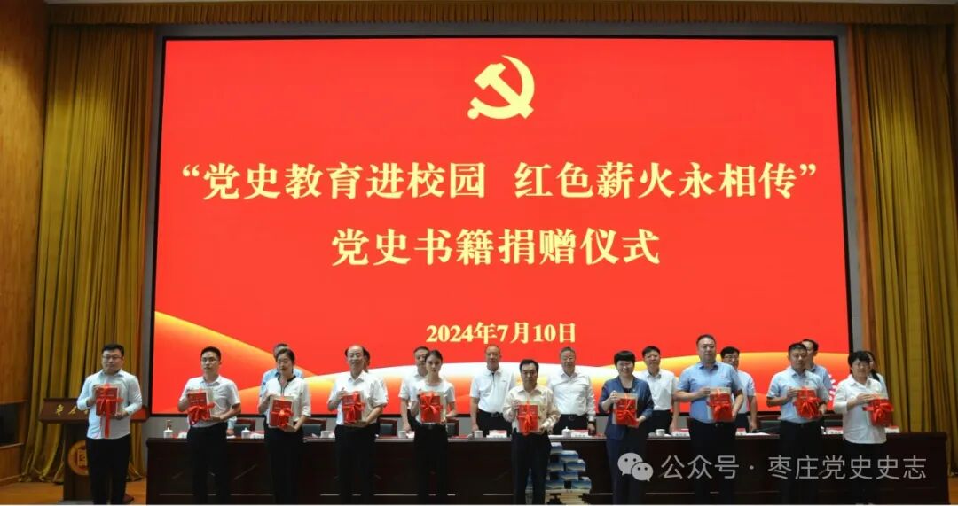 活动现场,参会领导向枣庄学院师生代表捐赠了《中国共产党枣庄历史》《鲁南铁道大队概览》《枣庄年鉴》《红色漫记》等党史史志书籍。捐赠仪式结束后,参会人员共同参观了中共山东百年历史图片展。展览通过精选的近300幅图片,全面展示了在党中央坚强领导下,山东党组织团结带领全省人民走过的百年光辉历程及取得的伟大成就,对于教育引导广大党员干部群众从党的历史中汲取智慧和力量,推动党史学习教育常态化长效化具有重要意义。
