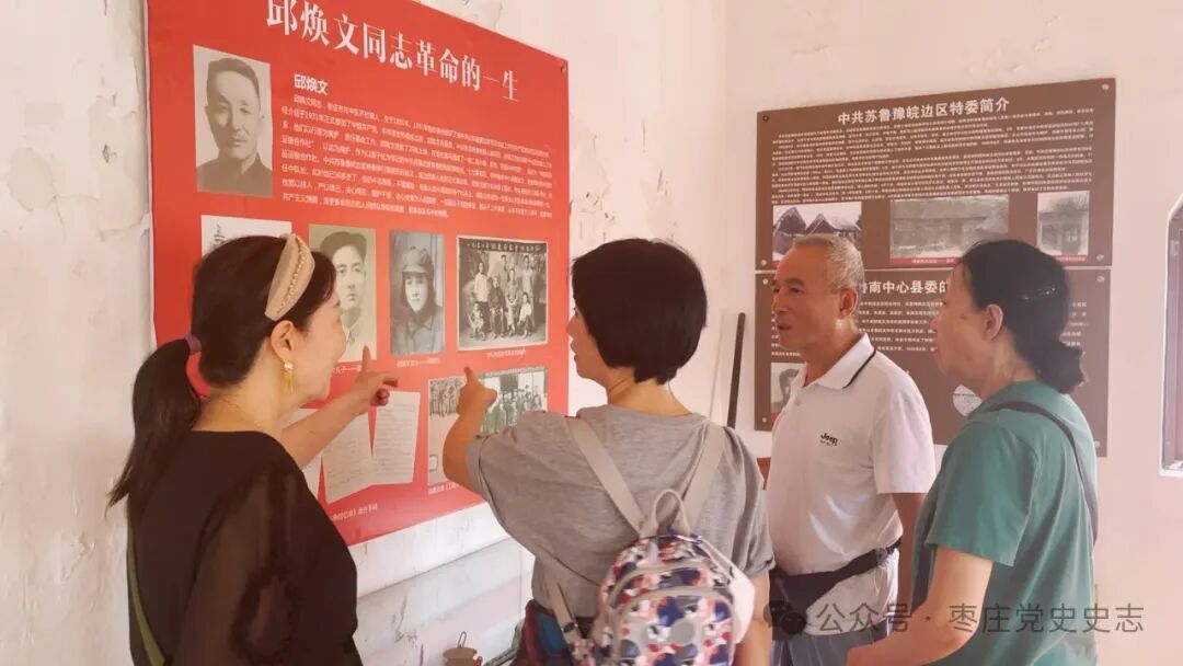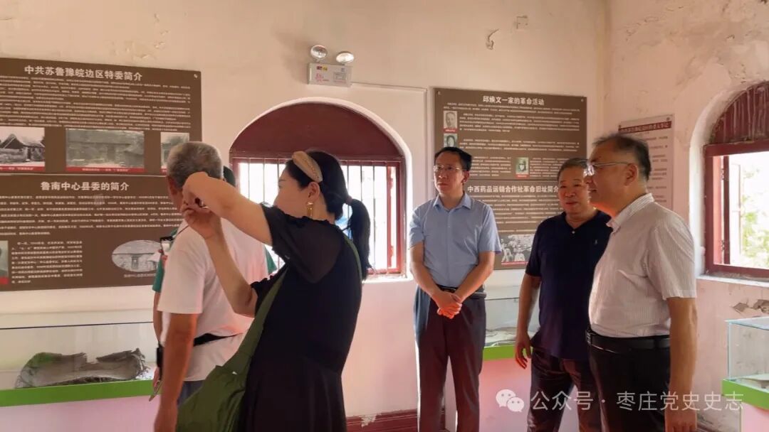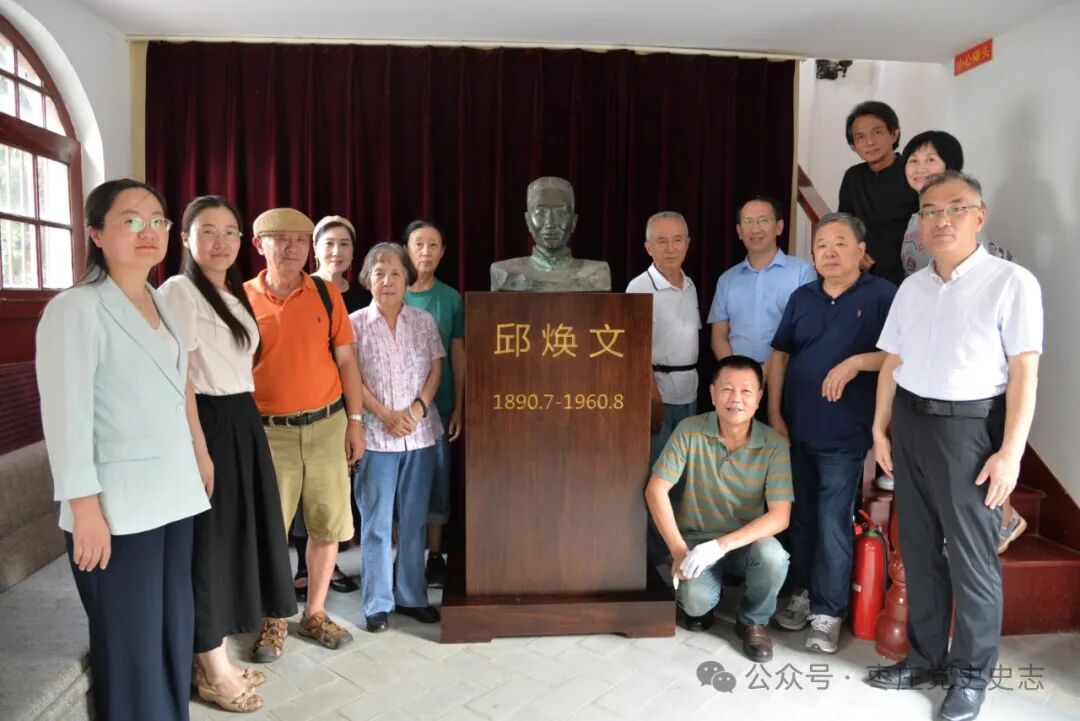 8月15日,枣庄革命先辈邱焕文后代一行十人来到位于枣庄市市中区中心街街道南马道的中西医药品运销合作社旧址,怀着对革命历史的深厚情感,追寻革命先辈们留下的红色印记,并捐赠了邱焕文铜像底座。市委党史研究院院长李福运、副院长朱琳琳、市中区委党史研究中心及中心街街道办事处负责同志陪同。