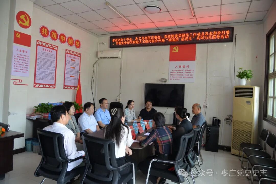 为迎接新中国成立75周年,深入践行为民服务宗旨,在2024年国庆节来临之际,9月29日,市委党史研究院联合市红十字会、农工党枣庄市委会、市政协委员联络工作委及农业和农村委,赴滕州市柴胡店镇大王楼村开展“迎国庆 惠民生”系列为民服务活动。市政协委员联络工作委副主任、二级巡视员秦志东,市委党史研究院院长李福运,市红十字会常务副会长、民建枣庄市委会副主委田静,农工党枣庄市委会副主委、枣庄职业学院副院长张蓝兮,市政协农业和农村委副主任许公瞻,市委党史研究院副院长朱琳琳,市红十字会副会长、党组成员王新甫,滕州市柴胡店镇镇长赵素贤,滕州市柴胡店镇挂职副镇长孙红出席本次活动。