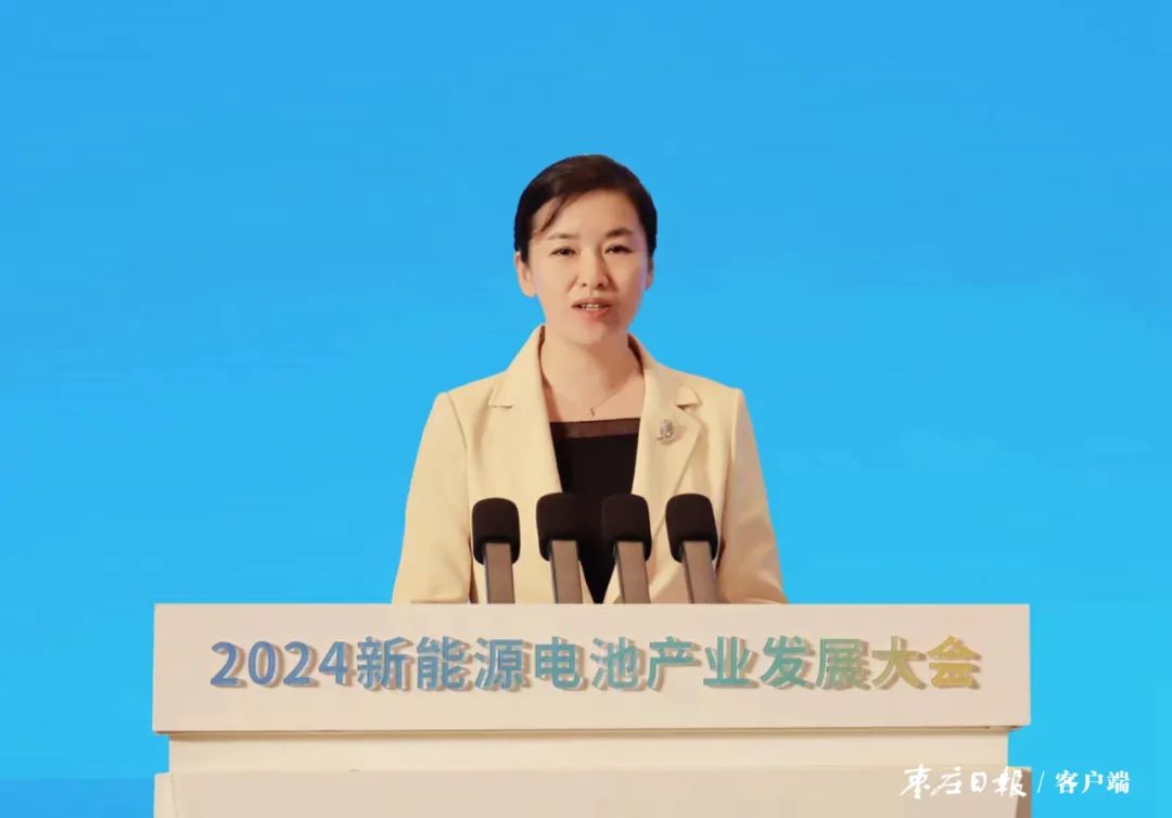 张宏伟以《竞逐产业新赛道 绿动枣城向未来》为题在开幕式上致辞。她指出,枣庄是典型的资源工矿型城市,昔日因煤炭而兴盛、当下凭绿能而崛起。近年来全市各级抢抓“双碳”重大战略机遇,紧紧围绕锂电、氢能、光伏、储能等细分领域招链引群,持续丰富“多能融合互补、源网荷储一体”业态场景,着力构建清洁低碳、安全高效的能源体系,推动新能源产业实现从“增速领跑”到“规模领先”再到“科技领航”的三级跨越。目前全市新能源企业发展到270家,其中锂电企业126家,建成国家和省级创新平台45个,获批授权专利3200余件。本次大会搭建起政府、智库、企业多方交流的重要平台,期待行业翘楚与专家学者踊跃分享前沿热点、充分碰撞思想火花,积极催化学术灵感、广泛达成合作共识,聚力推动新能源电池产业高质量发展,为加快促进全球绿色低碳转型提供更多中国方案。