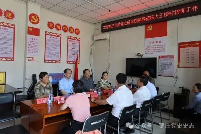 随后调研组在大王楼村村委会召开座谈会,与镇村干部、派驻第一书记就大王楼村发展建设情况进行深入沟通交流,详细了解大王楼村基层组织建设、村集体经济发展、村内基础设施建设、村志编修等工作开展情况。在听取了选派第一书记工作情况汇报后,李福运院长对第一书记当前开展的各项工作表示肯定,对当地党委、政府对第一书记的关心关怀表示感谢,并鼓励第一书记紧紧围绕服务大王楼村发展、助力乡村振兴等中心工作,积极开展调研、走访,摸清镇情村情,充分挖掘、整合大王楼村土地、闲置民宅及外出务工人员等各项资源,科学制定任职规划和帮扶计划,帮助大王楼村拓宽增收渠道。同时勉励村两委成员要广开言路、集思广益,不断提高村集体收入,提高村党组织凝聚力和战斗力。他表示市委党史研究院将立足部门职能优势,全力支持第一书记工作,当好第一书记坚强后盾,并在下一步工作中找准帮扶工作结合点、积极争取各项资源,为大王楼村发展做出实实在在的贡献。