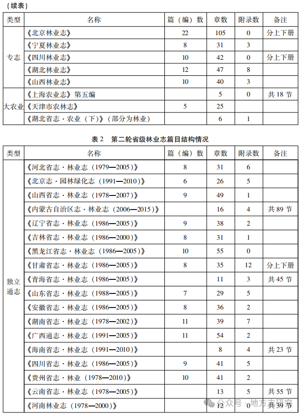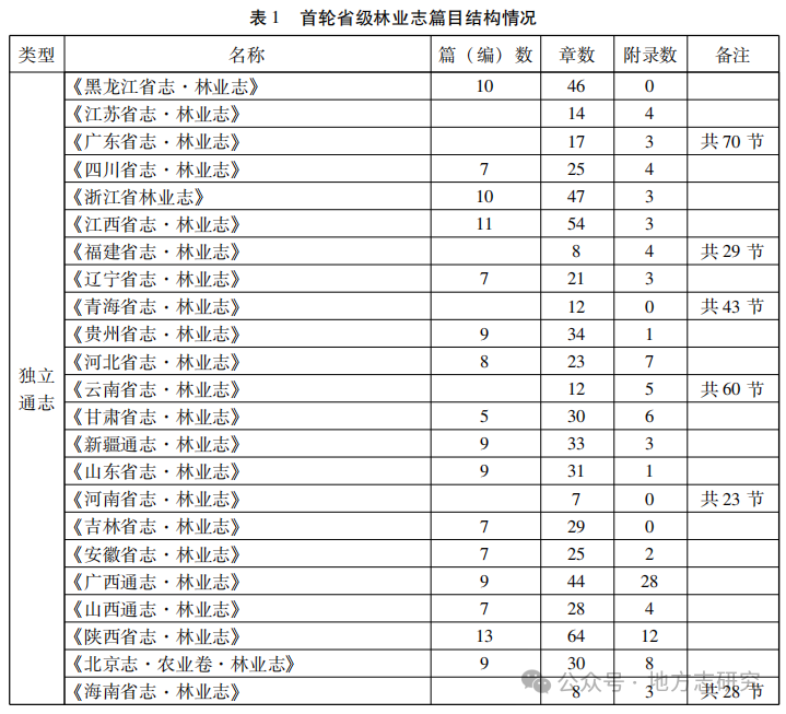 提要:以两轮编修、三种分类省级林业志为研究对象,对其篇目设计进行分析比较,发现其编修趋势:分类更加科学宏观,编修更趋向省级通志。但目前省级林业志篇目设置依然存在一些问题,如“完整性”与“冗余性”问题、“逻辑先后”与“时间先后”问题、分类标准不一问题,因此需要从不同方面对其进行改进创新。引 言